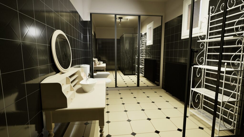 Dans ce projet, j’ai accompagné une architecte pour repenser une salle de bain vieillissante. Grâce à la 3D, j’ai modernisé l’espace en créant une douche design, un jeu de contrastes noir/blanc et une ambiance élégante, parfaitement adaptée aux attentes du client.